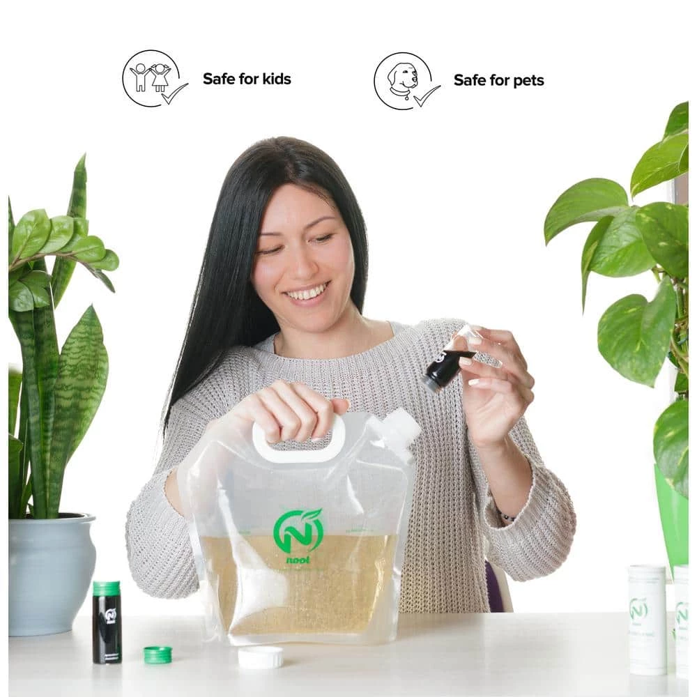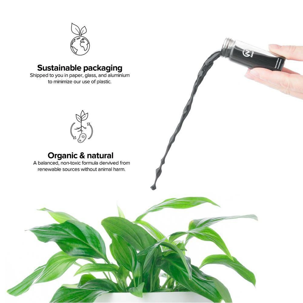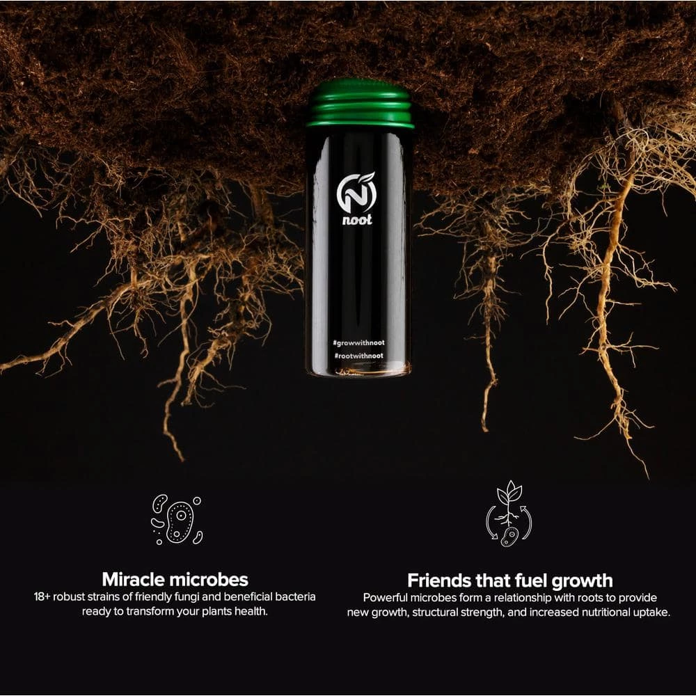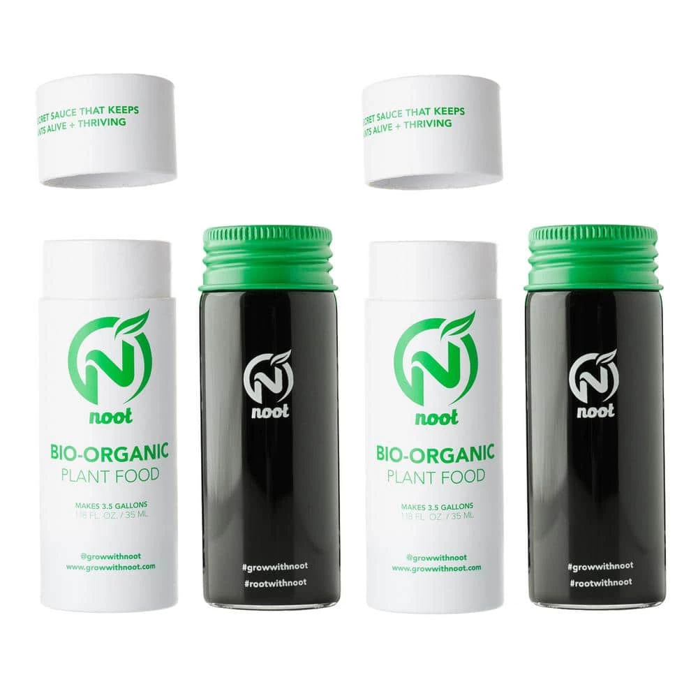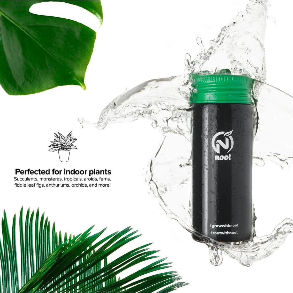 Use Noot bio-organic plant food every watering to keep your indoor plants alive and thriving. Noot makes it organically simple to grow a green thumb. Our improved liquid fertilizer formula has sourced 18 of the highest quality strains of beneficial bacteria and friendly fungi, that strengthen your plants at their cellular level by forming a symbiotic relationship with roots. These active root stimulator microbial helpers get to work after just one watering, unlike cheaper powders which require re-animation and longer times to populate before they get to work. Combined with balanced macronutrients and essential micronutrients like Cal-Mag Noot provides plants the perfect food and soil conditions. Simply mix 1 tsp per 1/2 gallon to transform your growing medium into a bio-active ecosystem that produces rapidly growing roots, brighter blooms, and lusher leaves. Indoor plants become more tolerant of root rot, bounce back quicker from neglect, and have an increased resistance to temperature swings. No more complex fertilizer labels, different dilutions, excessive additives, or stinky mess. Use the same dosage (1 tsp per 1/2 gallon) for houseplants living in dirt (soil mixes), semi-hydro (LECA), aquaponics (aerated water), hydroponics (scheduled growing systems like AeroGarden), or Noot’s soilless potting mixes. Eco-friendly sustainable packaging with glass vials upcycle into a propagation station to propagate nodes and plant cuttings.