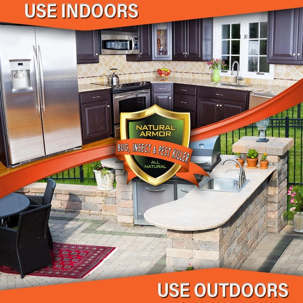 - Indoor/outdoor use – for indoor applications use anywhere there is an issue with unwanted bugs for outdoor applications use on furniture, trash cans, foundations, garages, pool houses and sheds, will not stain