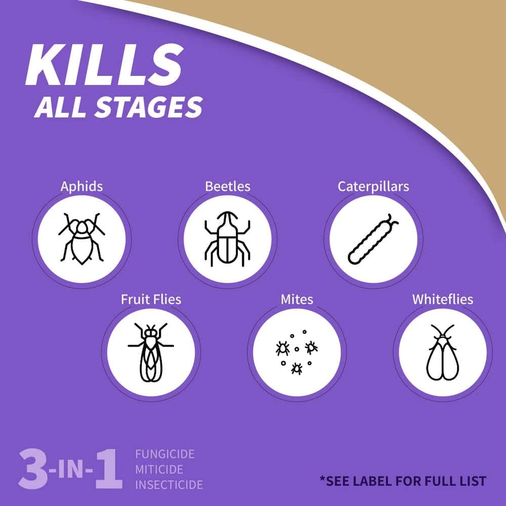 - Multi-purpose bug killer – Bonide neem oil is a perfect pest control solution for any garden dealing with mites, flies, mildew, and more, this product is a 3-in-1 fungicide, miticide, and insecticide