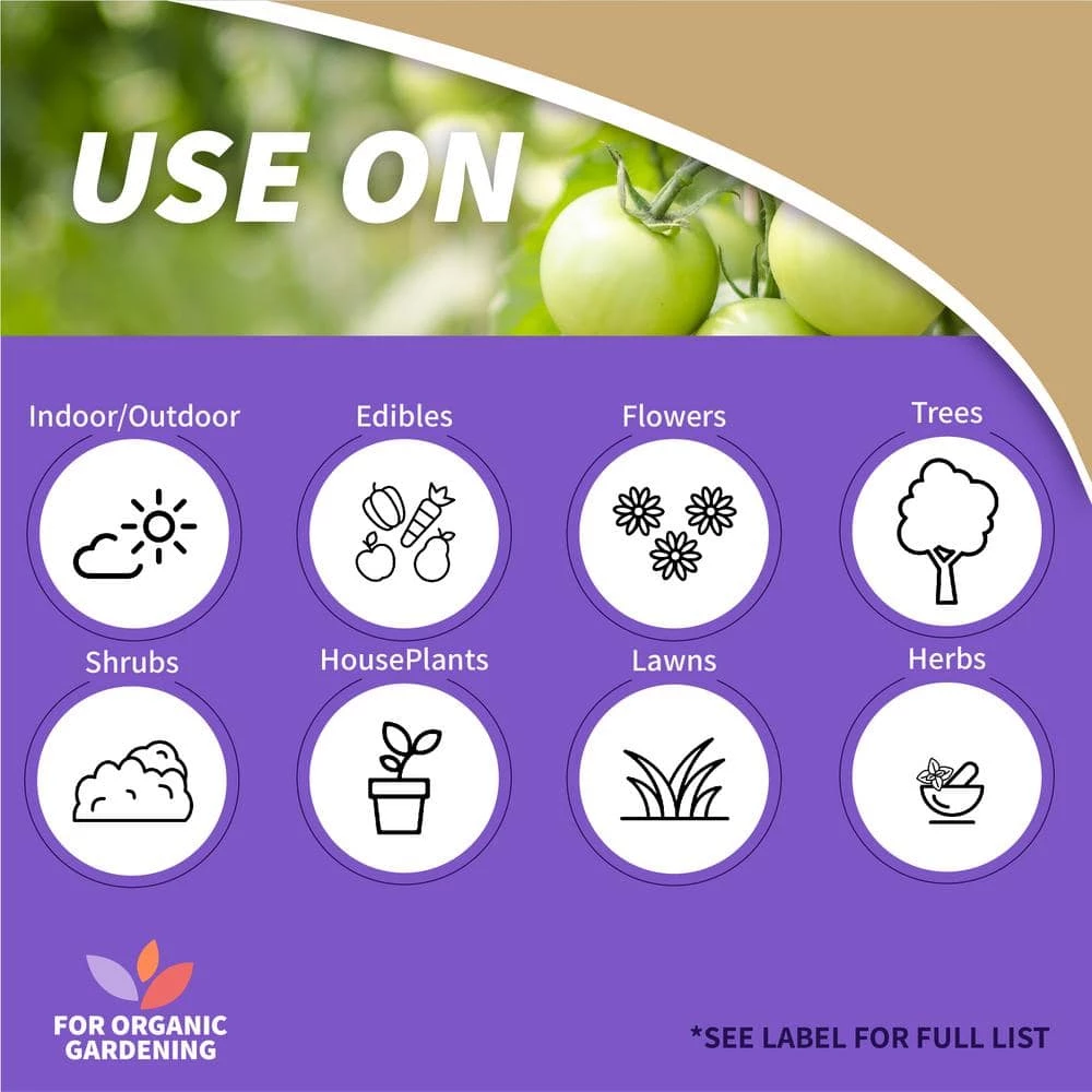 - Organic gardening – derived from the neem seed, our product is great for use on roses, flowers, vegetables, fruits, herbs, indoor houseplants, trees and shrubs, it’s approved for organic gardening