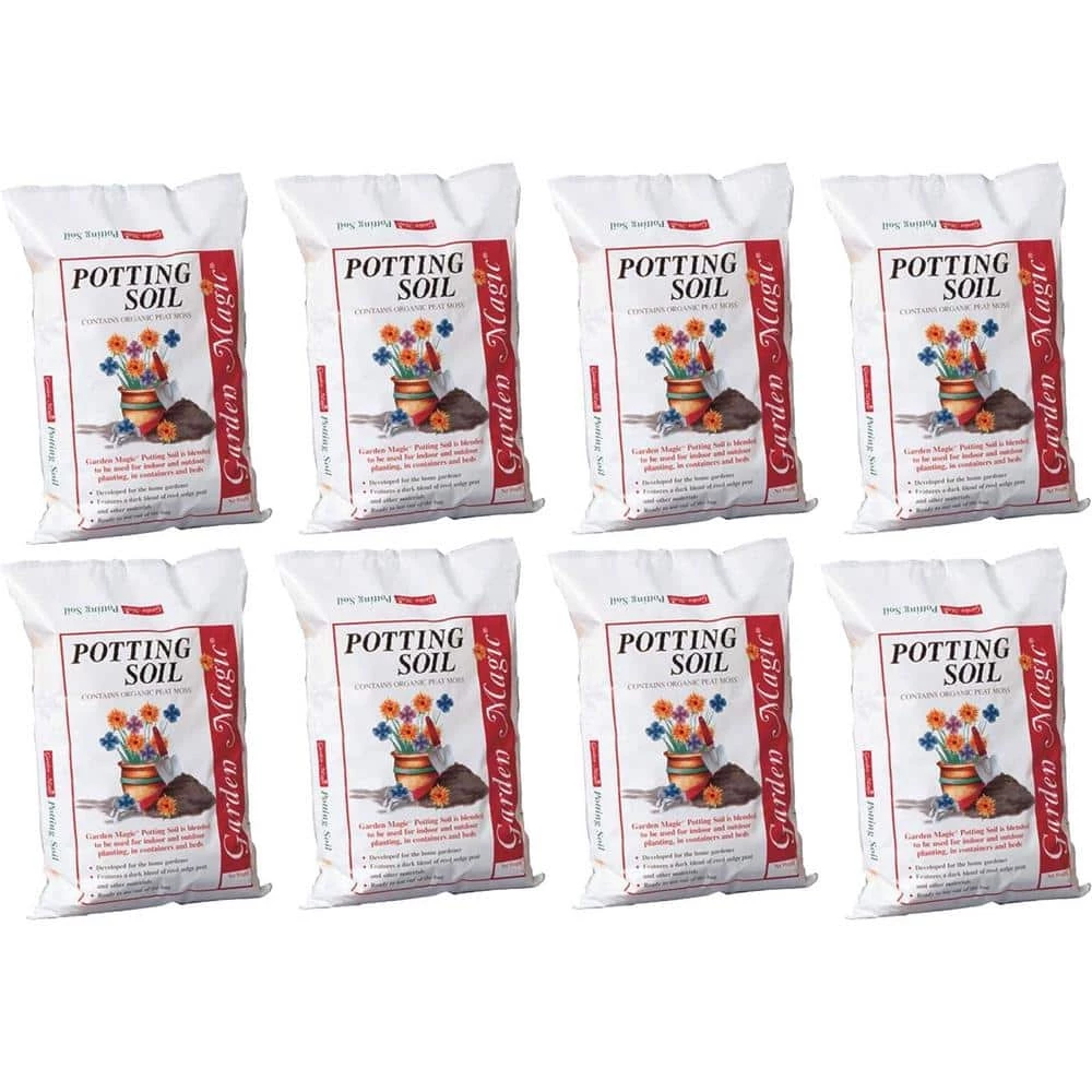 - 8-pack of garden magic potting soil features a blended formula for indoor and outdoor planting