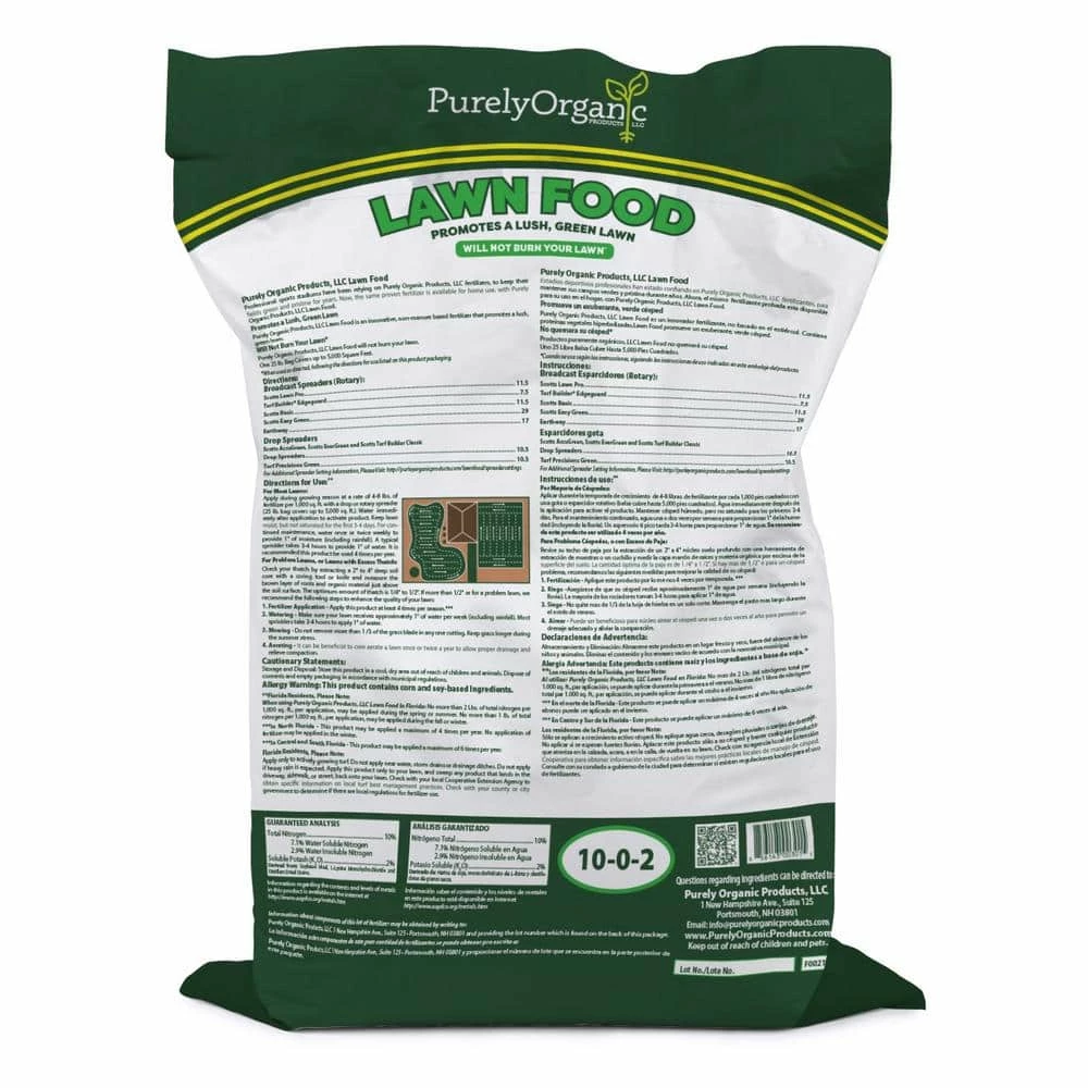 Lawn Food 10-0-2 from Purely Organic Products is made of natural ingredients, like distillers grains and soy; and it’s specially formulated to provide the nutrients needed to promote a lush, green lawn for you and your family. The slow-release nutrients in Purely Organic Products Lawn Food won’t burn your lawn and can be used throughout the growing season. This 25 Pound Bag covers up to 5,000 Square Feet. Purely Organic Products Lawn Food contains no harsh chemicals, and no smelly manure or biosolids. The plant-based formula feeds the soil providing exceptional results and thick, green grass in a wide range of geographical areas and climates.