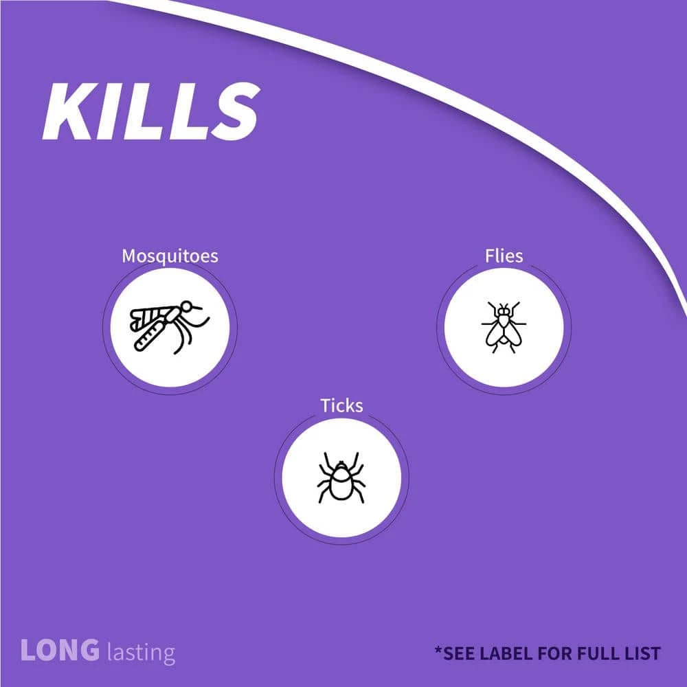 Bonide Mosquito Beater Kills and repels mosquitoes, flies, gnats and other listed insects. It has a long-lasting and pleasant scent. Simply attach to your garden hose and apply.