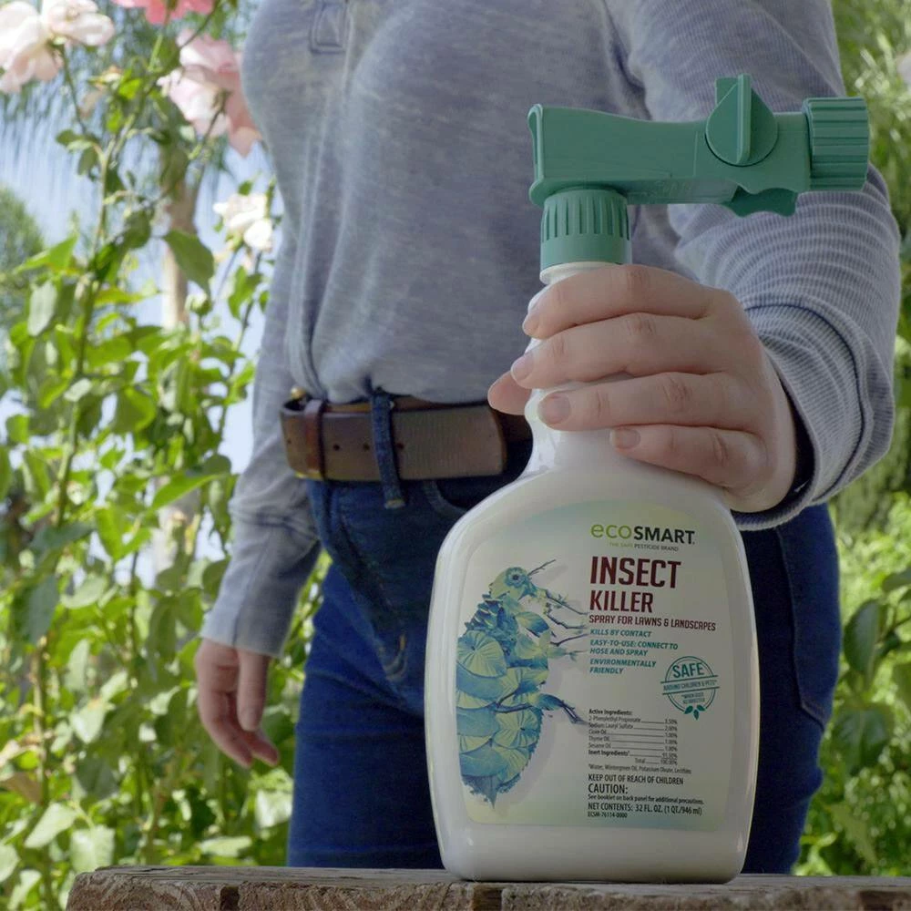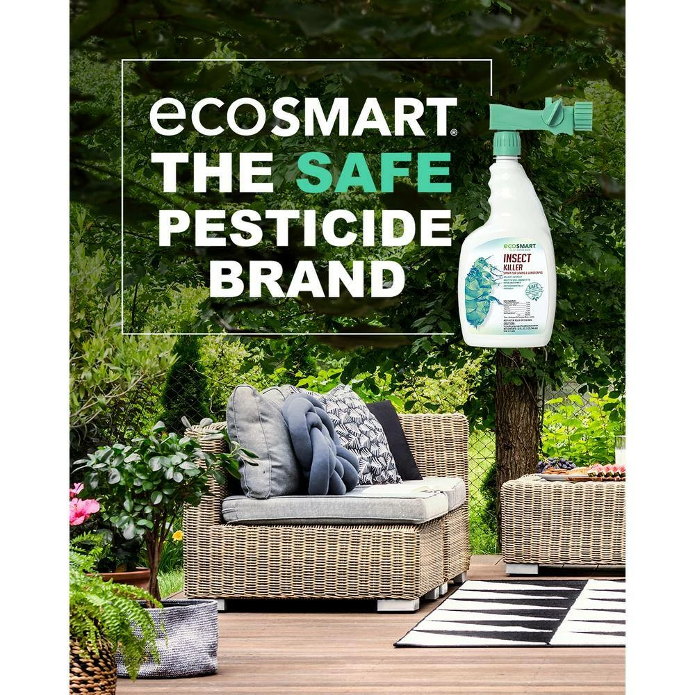 EcoSmart Insect Killer is a natural, plant-based spray that kills lawn and landscaping pests on contact. Ingredients include Clove Oil, Thyme Oil and Sesame Oil which are essential(s) oils extracted from plants combined with other active/inactive ingredients. Application is easy with a 32 oz. hose end spray bottle and is ready-to-use. for use on lawns, ornamental trees, shrubs and flowers, mulch and straw beds. Use around house foundations, patios and porches for a perimeter treatment. Not intended for use on vegetable, fruits or other food plants. Safe to use around children and pets (when used as directed). It will not harm fish, wildlife or contaminate ground water supplies. EcoSmart has been creating safe, effective ways to eliminate pests and weeds for almost 2 decades. with our proprietary formulas of plant-based essential oils, we are protecting you, your family, your pets and the ecosystem from harmful chemicals and disease spreading pests. EcoSmart is the safe pesticide brand and you can feel good about using EcoSmart products in and around your home.