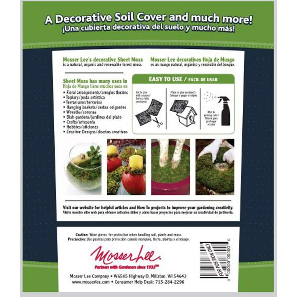 The Mosser Lee 325 sq. in. sheet moss soil cover provides an organic, decorative cover for your house plants. It helps your plants retain moisture. Sheet moss is also ideal for arts and crafts. Our natural sheet moss is harvested on the floor of old growth forests. While we inspect and remove foreign material before packaging, it is a natural product and may contain traces of lichens, molds, and leaves that grow along with it.