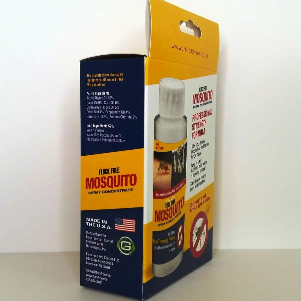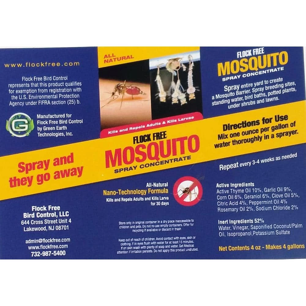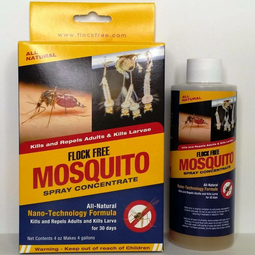 The only residential solution on the market which works great on both adult mosquitos and larva. Natural ingredients only. Thyme oil, garlic oil, corn oil, geraniol, clove oil, citric acid, peppermint oil, rosemary oil, salt and a combination of natural inert ingredients. Shake well. Mix 1 oz. per 1 Gal. of water. Mix thoroughly in a sprayer. Use any sprayer (manual, electric, mechanical, etc.) to spray in your yard. Spray mosquitos’ breeding sites, standing water, bird baths, potted plants, beneath shrubs and directly onto lawns. Repeat every 3-weeks to 4-weeks, as needed.