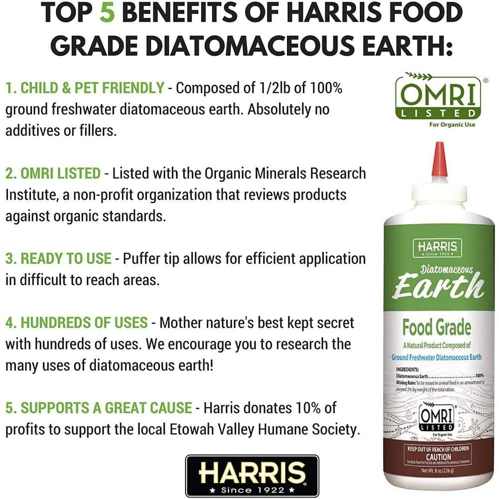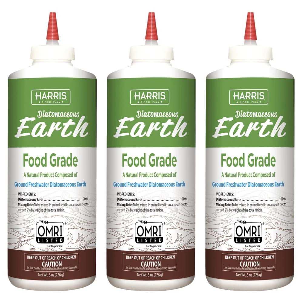 Harris ground fresh 100% Diatomaceous Earth is a natural product. It is OMRI listed with the Organic Minerals Research Institute and meets organic use standards. Use to protect your garden plants. Use in animal feed, and multiple other uses. Easy to use puffer bottle. Use value 3-pack for multiple treatments.