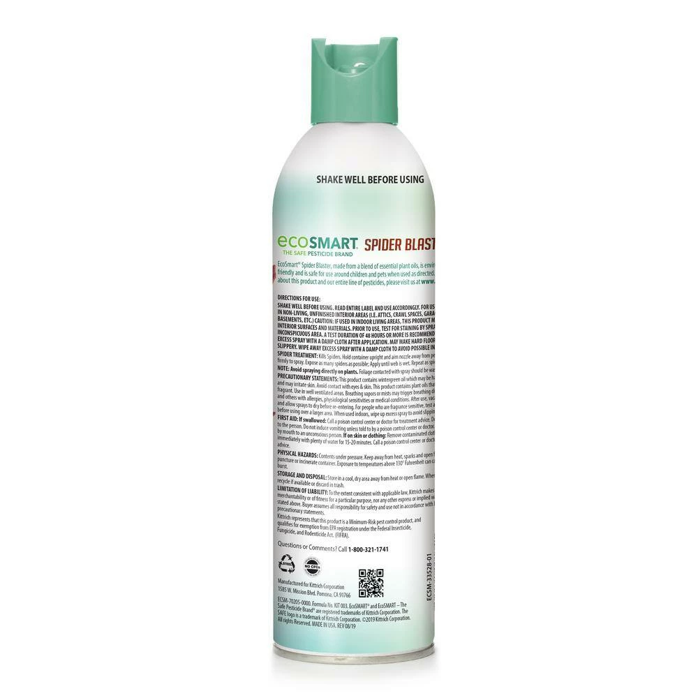 EcoSmart Spider Blaster is a natural, plant-based spray that kills spiders and spider mites. Ingredients include Rosemary Oil which is an essential oil extracted from Rosemary plants combined with other inert ingredients. Application is easy with a 9 oz. aerosol spray can. Use in unfurnished, non-living areas such as attics, crawl spaces, garages and basements. Safe to use around children and pets (when used as directed). It won’t harm fish, wildlife or contaminate ground water supplies. EcoSmart has been creating safe, effective ways to eliminate pests and weeds for almost 2 decades. With our proprietary formulas, we are protecting you, your family, your pets, and the ecosystem from harmful chemicals and disease spreading pests. EcoSmart is the safe pesticide brand and you can feel safe using EcoSmartproducts in and around your home.