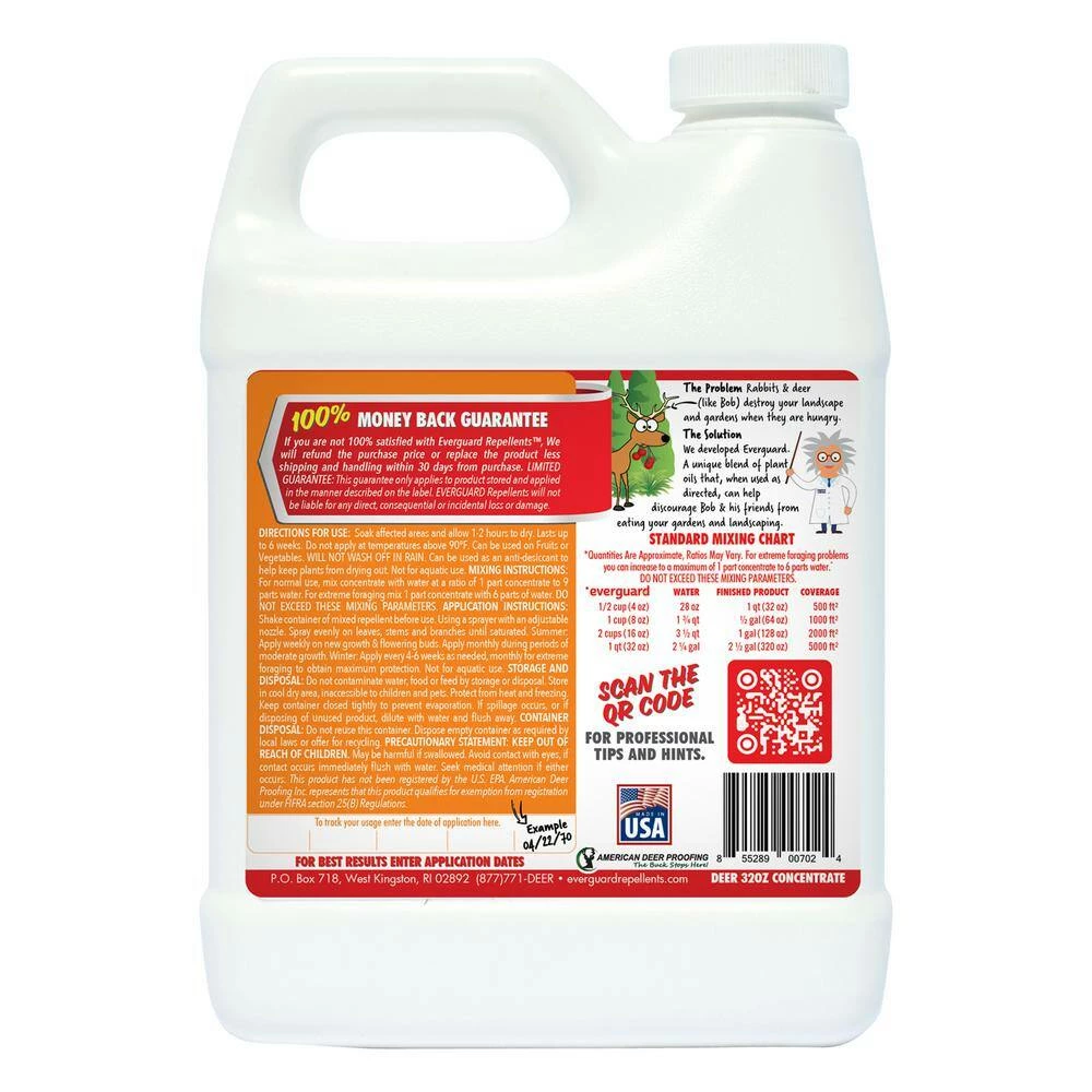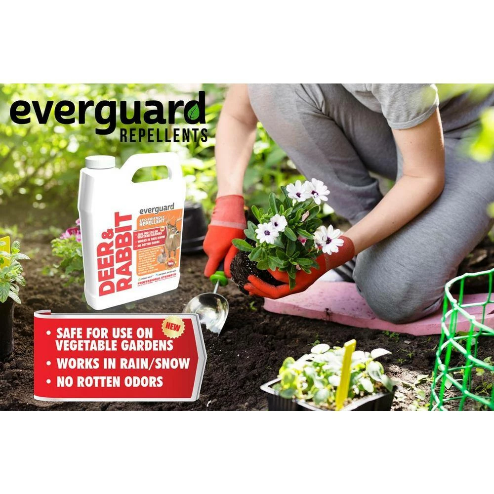 Tired of deer and rabbits eating your flowers and shrubs or destroying that row of arborvitaes you put up along the property line for privacy. EverGuard Deer and Rabbit Repellent, designed and used daily by our commercial spray service, has proven to be safe, extremely effective deterrent against deer and rabbits. Concentrates mix easily with water and can be stored in your sprayer without worry of clogged nozzles or product going bad. Ready-to-use sprays just shake and spray your plants. Take back your yard and enjoy the beauty of flowering plants with Everguard Deer and Rabbit Repellents.