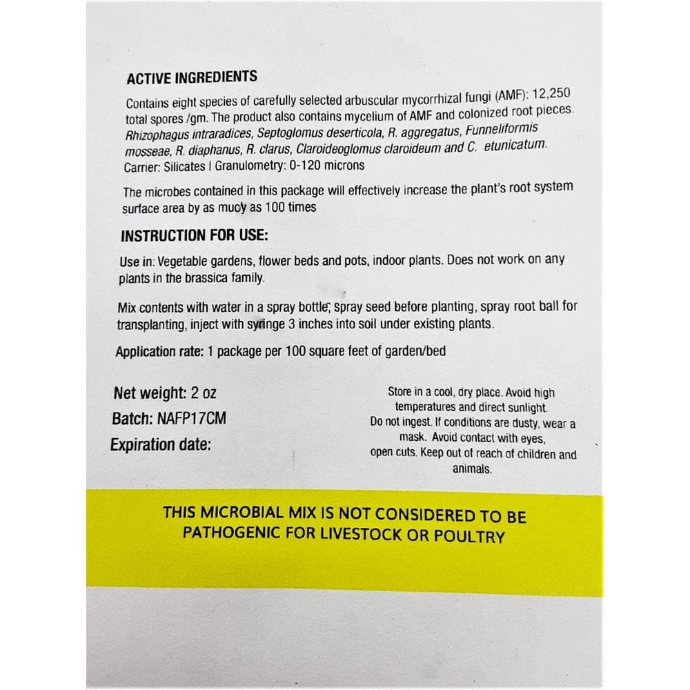 - Contains 8 species of carefully selected arbuscular micorrhizal fungi
