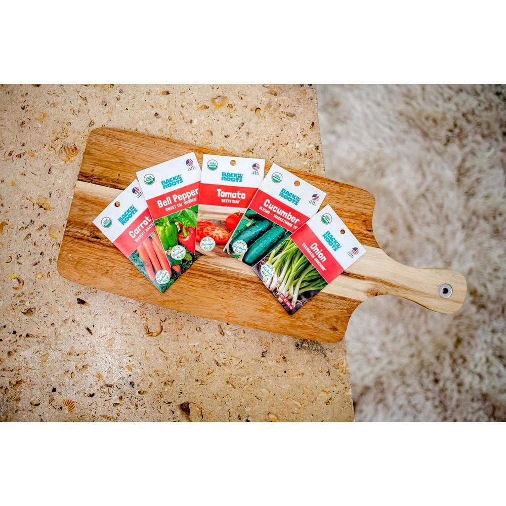 - All the seeds you can plant: the pack includes Cilantro (Slow Bolting), Basil (Genovese), Mint (Peppermint), Oregano (Italian), Parsley (Italian), Spinach (Bloomsdale), Arugula (Roquette), Lettuce (Black Seeded Simpson), Pea (Snap Sugar Daddy), Bean (Blue Lake Bush Green), Radish (Cherry Belle) or Radish (German Giant), Tomato (Red Cherry) or Tomato (Rutgers), Tomato (Beefsteak), Bell Pepper (Sweet Cal Wonder), Pepper (JalapeΓ±o) or Pepper (Cayenne), Cucumber (Marketmore 76), Onion (Evergreen Bunching), Carrot (Scarlet Nantes), Zucchini (Cocozelle) or Beet (Detroit Dark Red), Tomato (Roma) or Tomato (Big Rainbow)