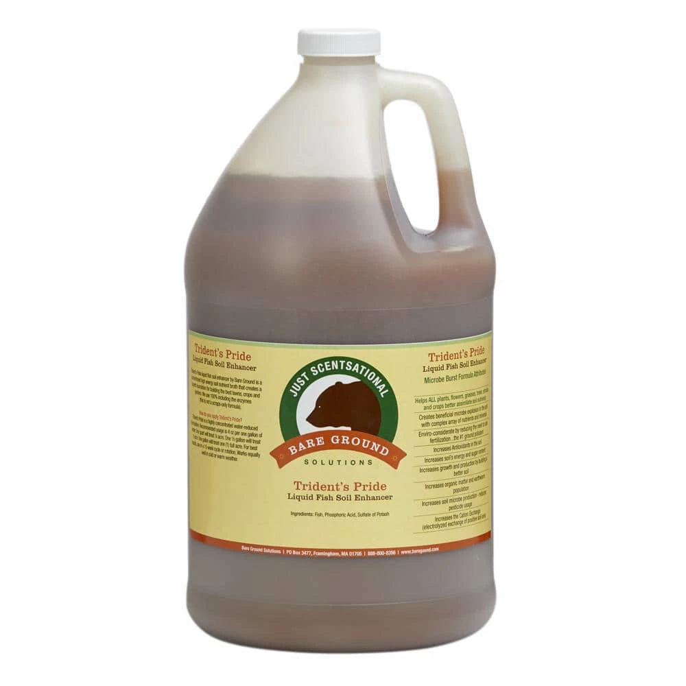 Just Scentsational’s Trident’s Pride by Bare Ground is an all-natural cold pressed fish hydrolysate packed with vitamins, amino acids, microbes and enzymes and other nutrients that all soils and plants require for rapid, dynamic and optimal growth in place of chemical fertilizers. Cold pressing insures that the beneficial active agents are not killed off and that the fish odor is kept to an acceptable minimum.