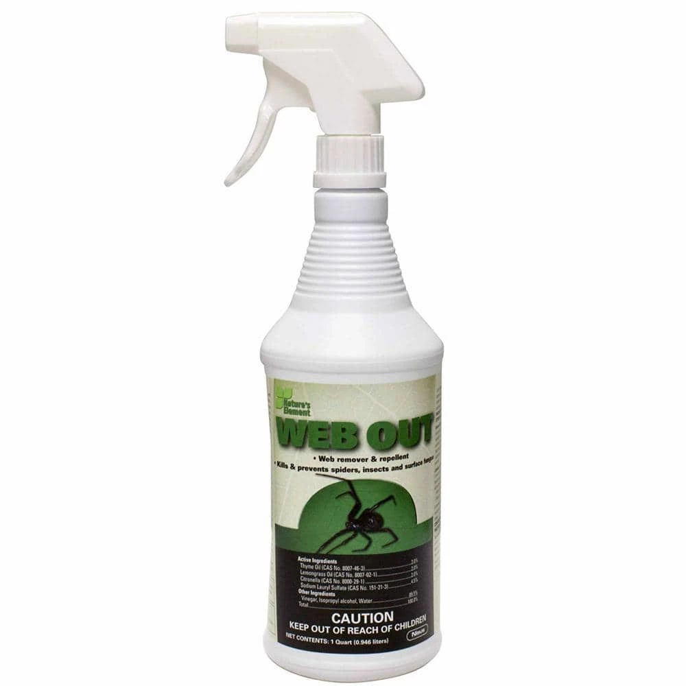 WEB OUT Web Remover and Repellent is made from essential oils and vinegar. Kills spiders and helps prevent spider webs from attaching to surface. Spray on webs or your webster for easier cleaning. Also acts as a contact pesticide to kill other general pests such as mosquitoes and cockroaches. Web Out is part of our Nature’s Element line of EPA 25(b) exempt products, kills spiders and helps prevent spider webs from attaching to treated surfaces. Web Out can also be used as a contact pesticide to kill ants, crickets, mosquitoes, cockroaches, perimeter pest insects and other general pests. Furthermore, Web Out can be applied as a surface application to kill and prevent surface fungus such as mildew. It can be applied to metal, wood, painted surfaces, brick, stucco, fiberglass, concrete, paneling and other surfaces.